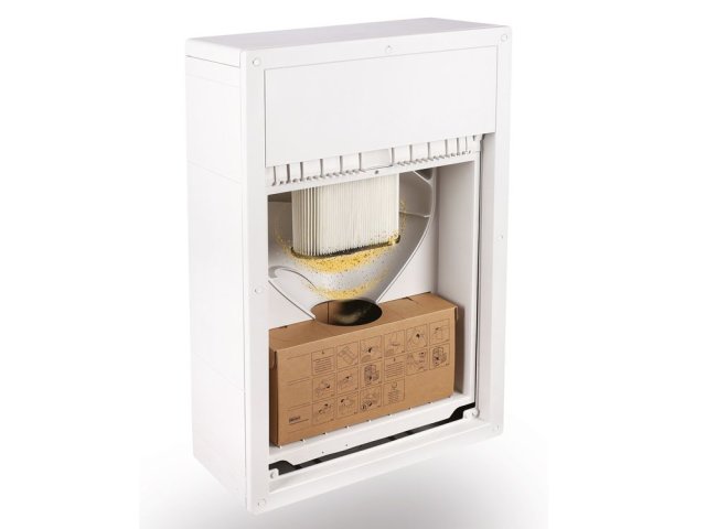 Sesalnik je tih, in skoraj neviden v kolikor se namesti v zid. Vrata se lahko prebelijo in je v celoti skrit s površino. Vidna je le obroba vrat.
