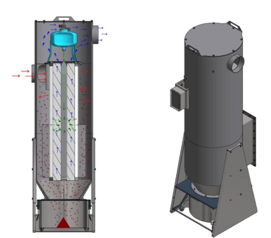 Ciklonske Atex filtrirne naprave za cone ATEX 21/22 in 21/21. Kompaktna filtrirna enota s sistemo čiščenja s komprimiranim zrakom, je odlična za filtracijo varilnega dima, brusilnega prahu, dimov pri razrezu jeka in zraka napojenega s prašnimi delci.