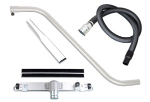 VT22 je opremljen s celotnim kompletom orodij za čiščenje tal, vključno s cevjo D50x7,5 metra, aluminijasto palico »S«, šobo za ozke reže, talnimi nastavki itd.