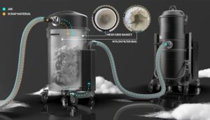 Predseparator za ostanke in kosovne materiale je zasnovan za enostavno zbiranje velikih ostankov odpadnega materiala in preprečuje zamašitev sesalnih sistemov, sesalnih cevin in sesalnikov. Njegova robustna konstrukcija omogoča učinkovito ločevanje in transport kosovnih materialov, hkrati pa ščiti filter in zbirnik primarnega sesalnika.